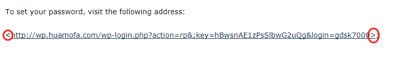 • 如果还是显示链接无效的话,请检查连接地址,如下图,看一下实际地址中是否包含了“<”或“>”,如有去掉后直接复制地址在浏览器中访问即可。